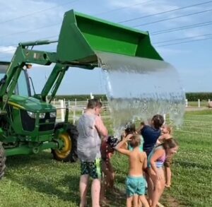 Redneck Waterfall Get ready to dive into the ultimate splash zone with the “Redneck Waterfall”! Brace yourself for a thrilling cascade as a massive bucket of water from our tractor loader unleashes a refreshing deluge to supercharge your day! Leave Us A Review!